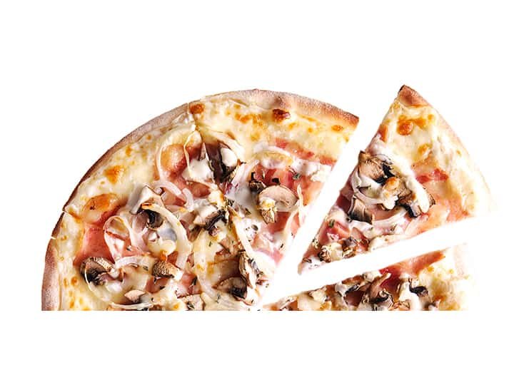 Mozzarella, tocino, onion, parmesano, champinones, orégano