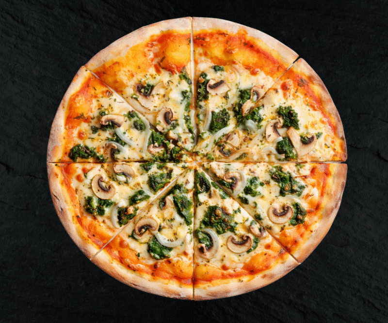 Tomato sauce, mozzarella, mushrooms, onion, pepper
