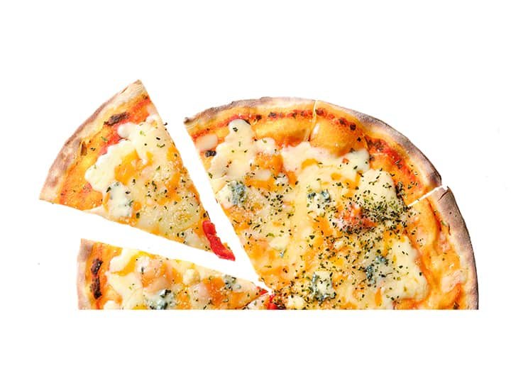 Mozzarella, sauce tomate, queso azul, parmesano, mix of 3 quesos, orégano