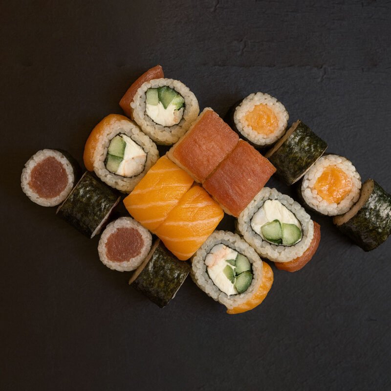 4 pcs. Salmon Maki, 4 pcs. Tuna Maki, 4 pcs. Jambo Maguro, 4 pcs. Jambo