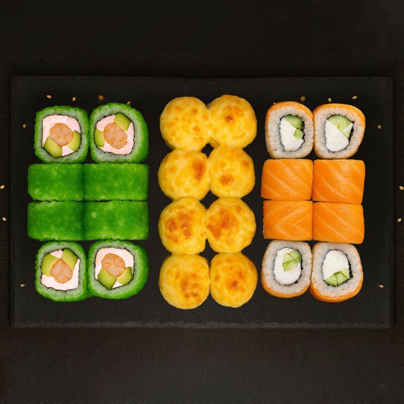 8 pcs. Classic Philadelphia, 8 pcs. Philadelphia with Shrimp, 8 pcs. Philadelphia with Eel, 8 pcs. Philadelphia with Tuna