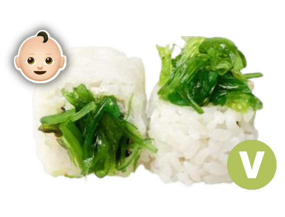 Manzana, algas marinas wakame, crema of queso, sauce of cacahuele, sesame (8 pcs.)