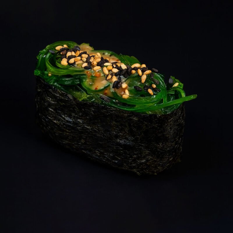 Arroz, alga, alga wakame, salsa sésamo