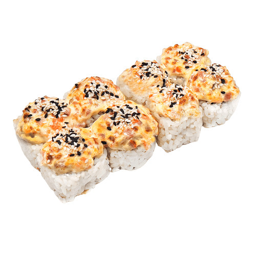Cucumber, avocado, crab sticks, mix cheeses, red masago, sesame, teriyaki, mayonnaise (8 uds.)