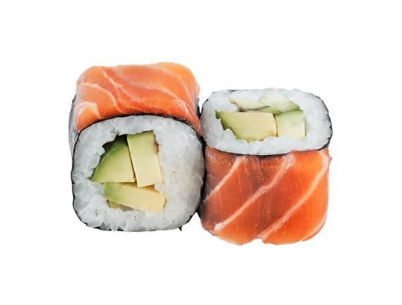 Tobiko rojo, massago negro, loncha de queso, salmón, atún, mayonesa (8 uds.)