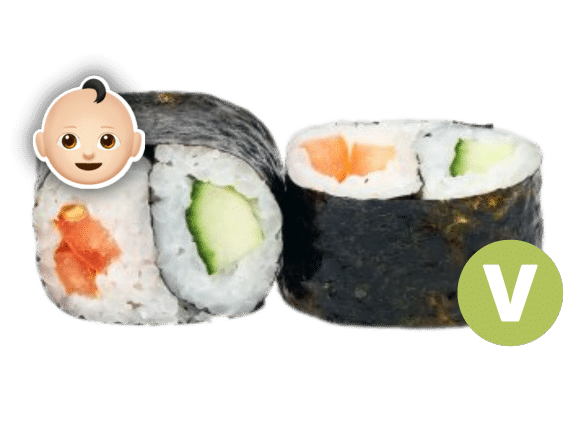 Tobiko rojo, massago negro, loncha de queso, salmón, atún, mayonesa (8 uds.)