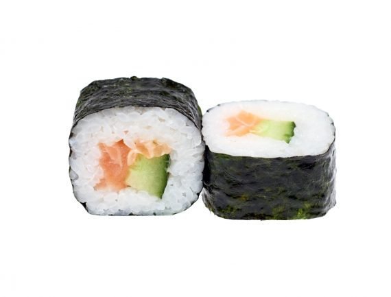 Tobiko rojo, massago negro, loncha de queso, salmón, atún, mayonesa (8 uds.)