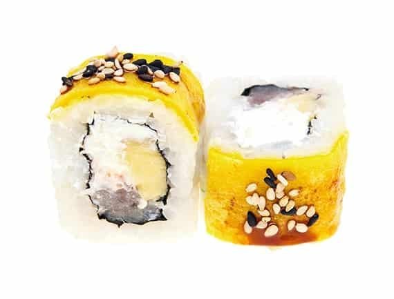 Gambas, masago naranja, aguacate, crema de queso (8 uds.)