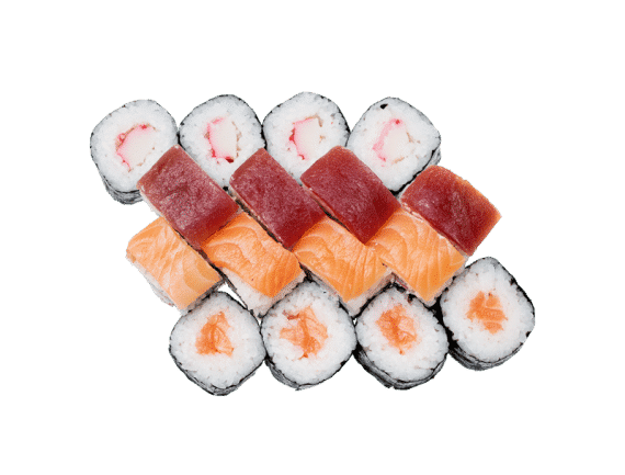 4 pcs. Jambo, 4 pcs. Jambo maguro, 4 pcs. Sake маки, 4 pcs. Kani маки (16 pcs.)